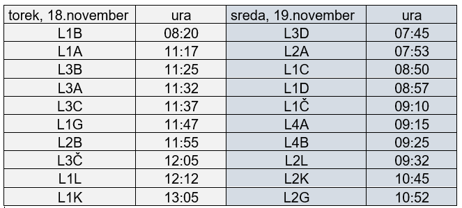 Skupinsko fotografiranje oddelkov bo izvedeno po naslednjem razporedu:
