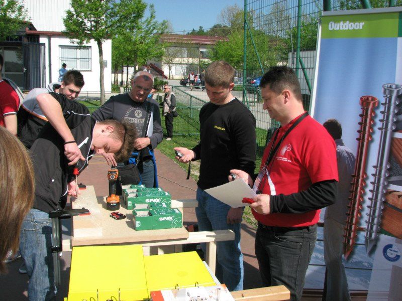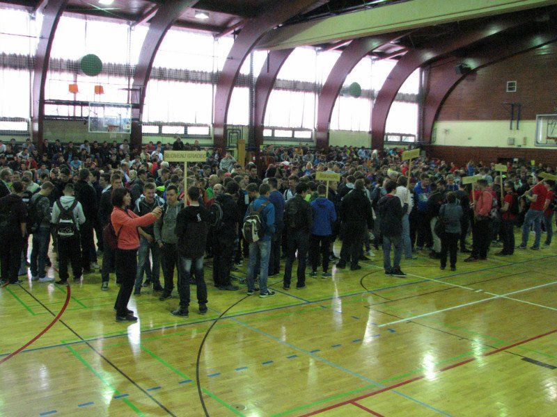 Ob 9. uri pa je bilo potrebno začeti tekmovati, pomagati pri organizaciji ali bučno navijati za naše tekmovalce, zato za druge misli ni bilo več časa. V Športni dvorani Krim je naša ravnateljica mag. Majda Kanop otvorila prireditev in nagovorila učitelje, mentorje in dijake vseh slovenskih lesarskih šol: ŠC Ljubljana (Srednja lesarska šola), ŠC Slovenj Gradec (Srednja šola Slovenj Gradec in Muta), ŠČ Novo mesto (Srednja gradbena in lesarska šola), Gimnazija in srednja šola Kočevje, ŠC Škofja Loka (Srednja šola za lesarstvo), ŠC Nova Gorica (Strojna prometna in lesarska šola), Lesarska šola Maribor, Srednja poklicna in tehniška šola Murska Sobota, Zavod za gluhe in naglušne Ljubljana, ŠC Krško - Sevnica (Srednja šola Sevnica) in Srednja gozdarska in lesarska šola Postojna.