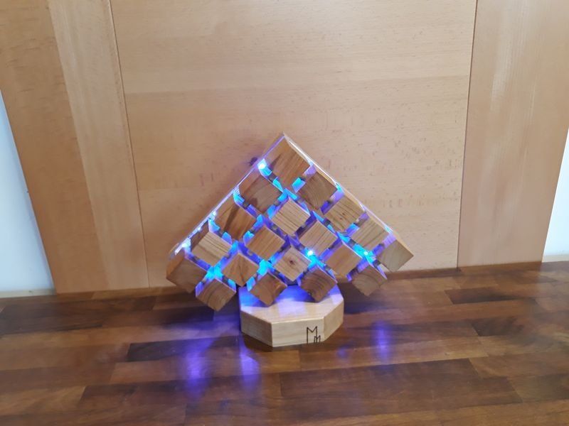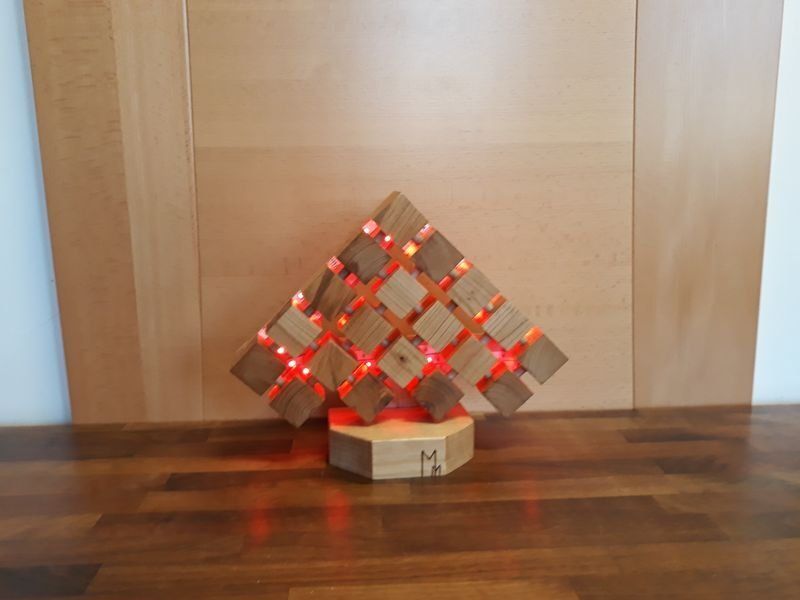 Letošnji izziv je bil težak (»Profesorca, saj nismo na elektro!«), ampak rezultat je vredno videti; lučke so zasijale v svoji izvirnosti, pokazale so čar lesa v topli svetlobi. Vseh lučk seveda nismo zmogli/upali priključiti, vendar po vsakem obisku razstave, gorijo druge lučke; dijaki na hitro kakšno odklopijo in priklopijo svojo….