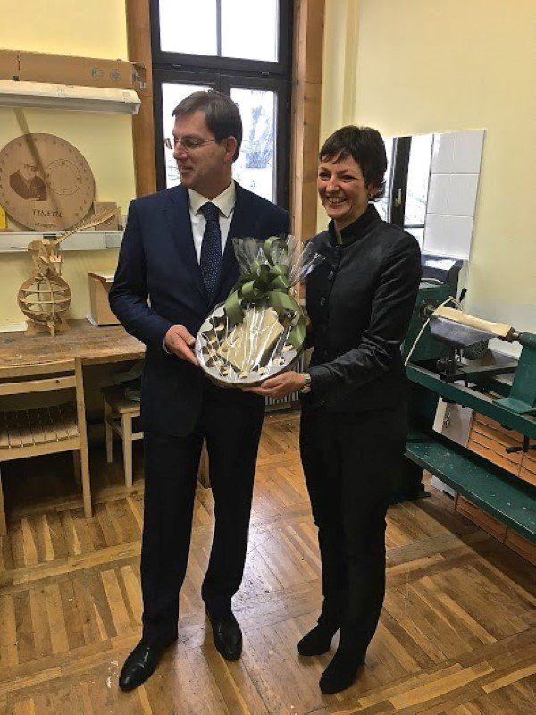 Ob spremstvu ravnateljice SLŠ Majde Kanop, direktorice ŠC Nives Počkar in poslanca DZ Ivana Škodnika sta si ogledala predstavitev izobraževalnih programov s področja lesarstva, razstavni prostor, učilnice in šolske delavnice. Dijaki so jim pokazali, kako poteka delo na lesno-obdelovalnih strojih. Visoki gostje so bili s prikazanim navdušeni in predsednik vlade je na svojem tvitu zapisal »Krasen informativni dan na Srednji lesarski šoli v LJ. Les je za Slovenijo izjemno strateška dobrina, poklic lesarskega tehnika pa plemenit.«