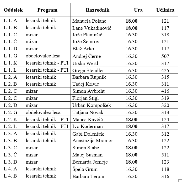 Med 17.00 in 18.00 uro so skupne govorilne ure. Objavljamo razpored za roditeljski sestanek: