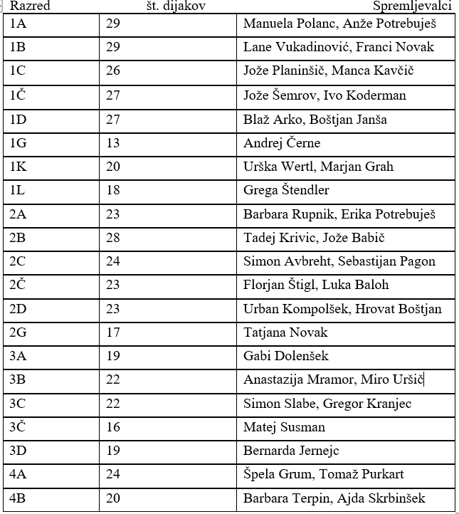 Vsi dijaki imajo pouk štiri šolske ure, ob 11.40. uri pa se zberejo pred GR, kjer počakajo na svoje spremljevalce.
